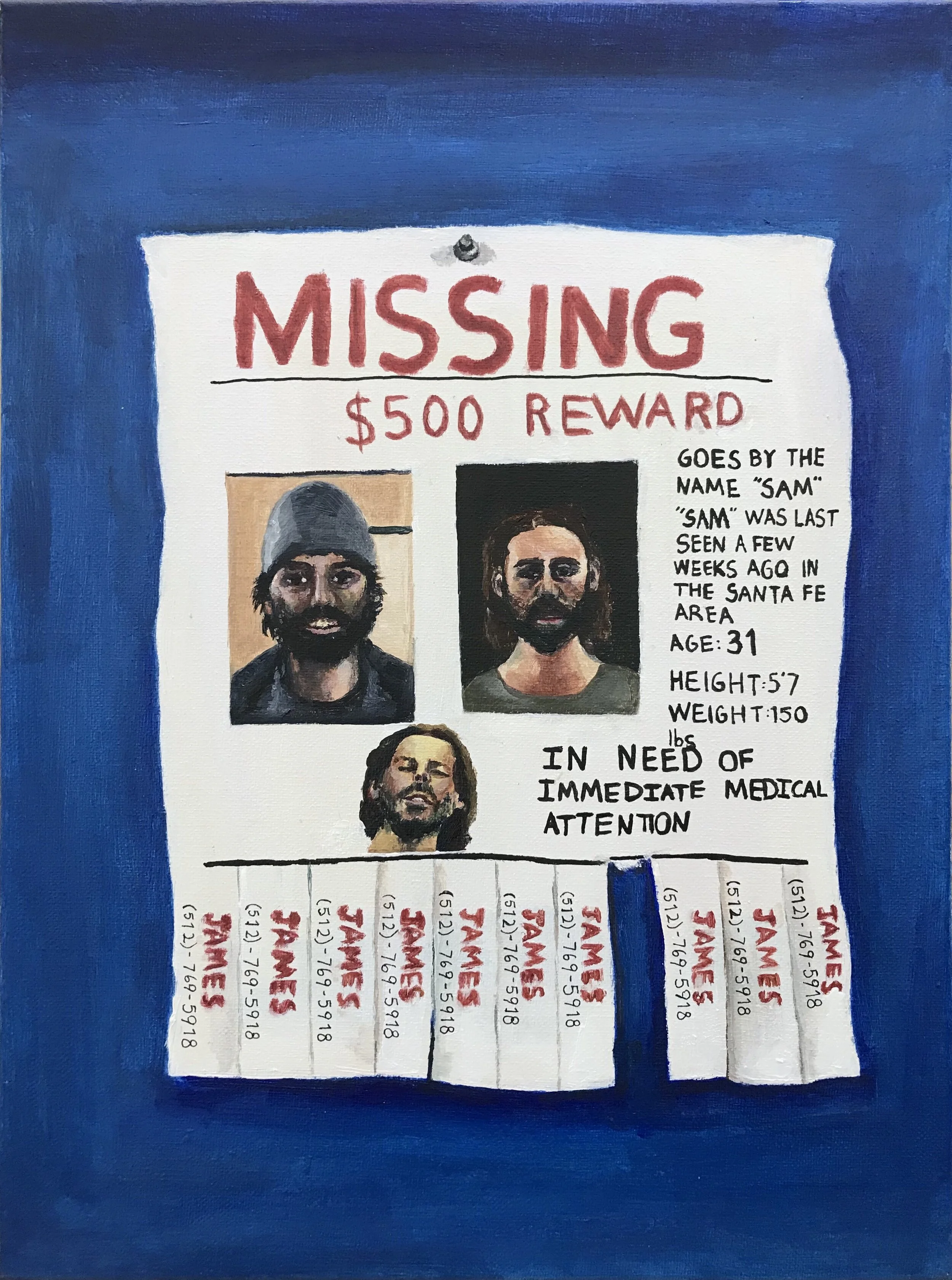 “Billboard for Injured”, 54” by 48”, acrylic on canvas, 2021