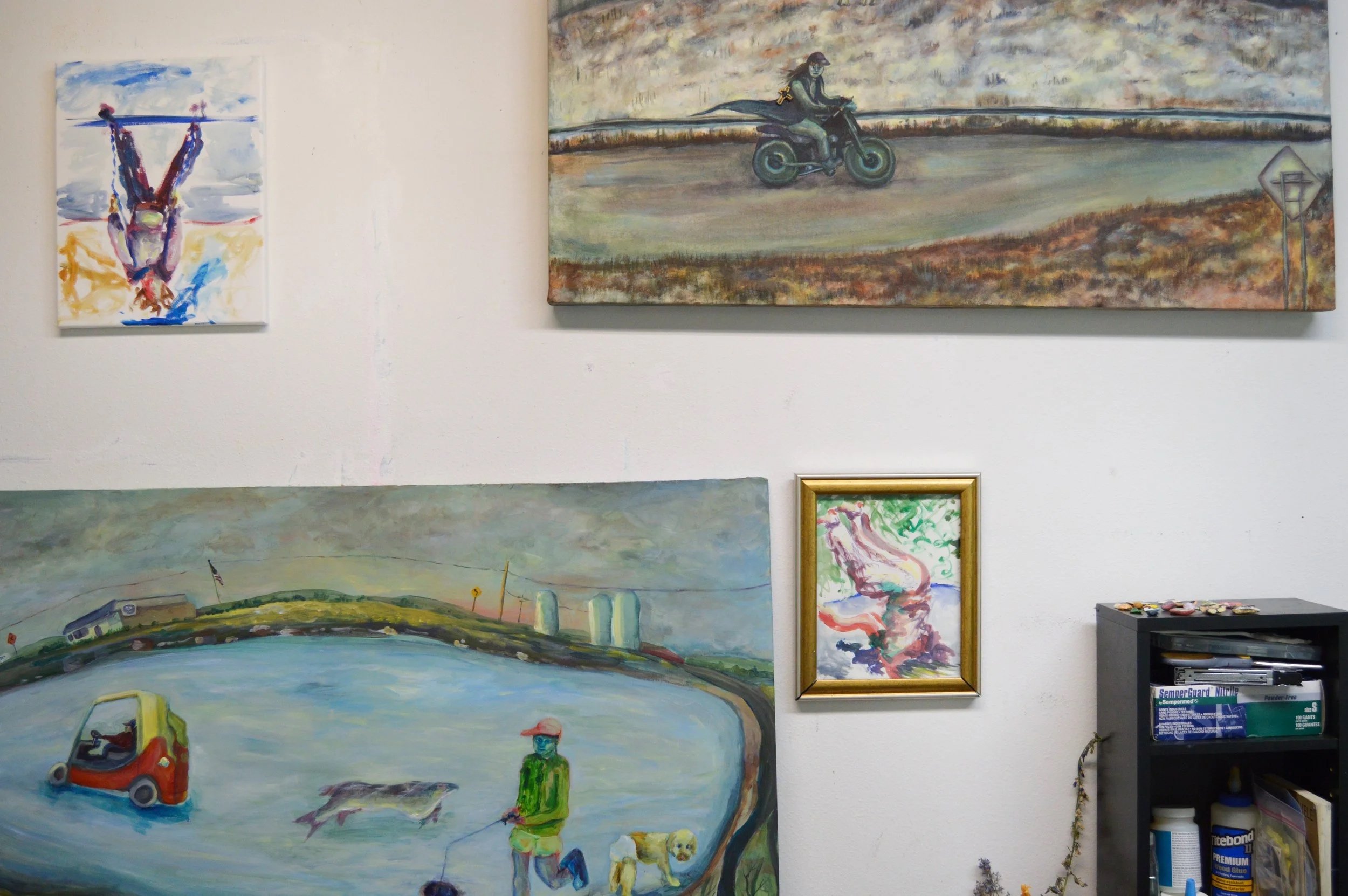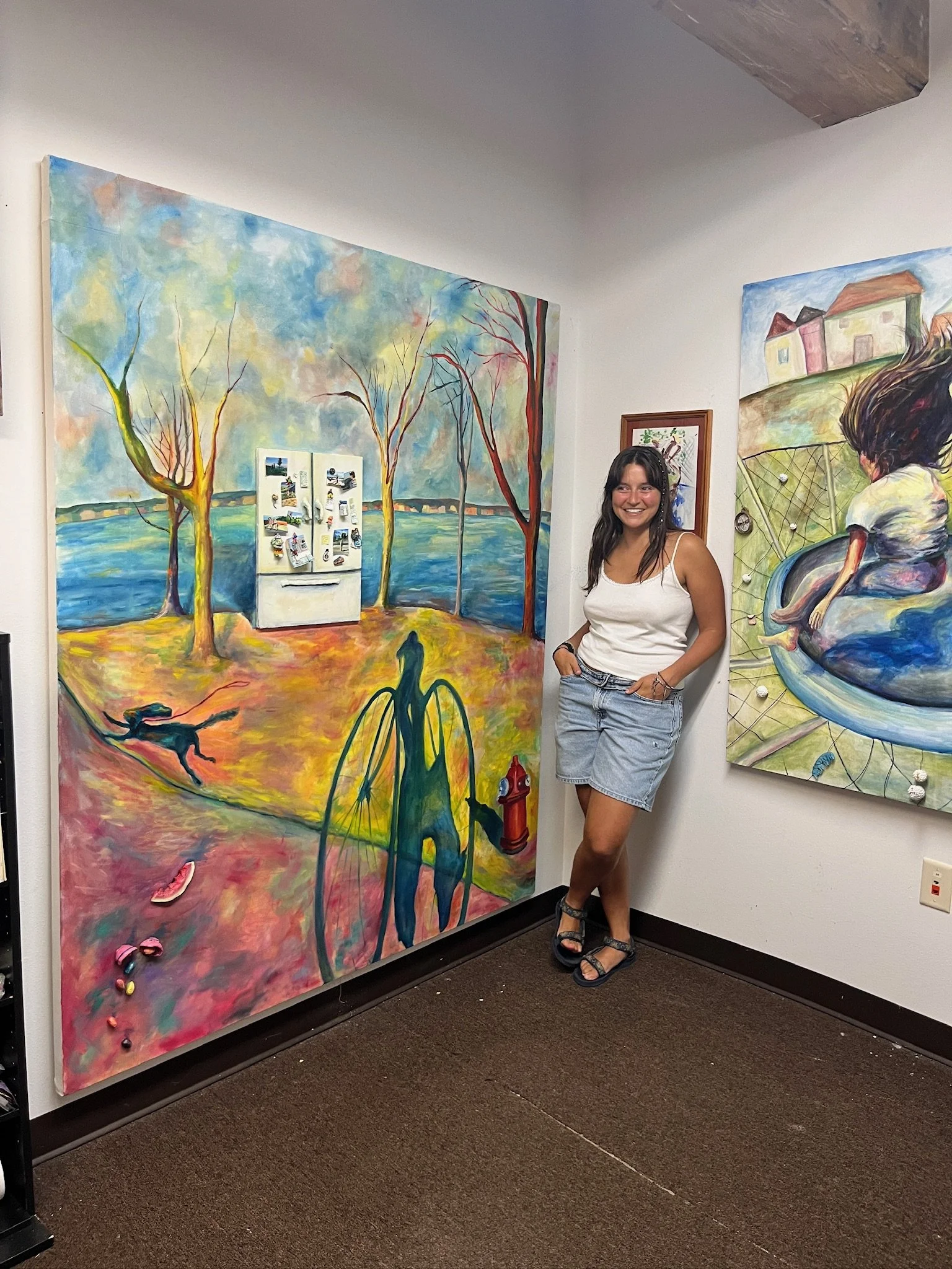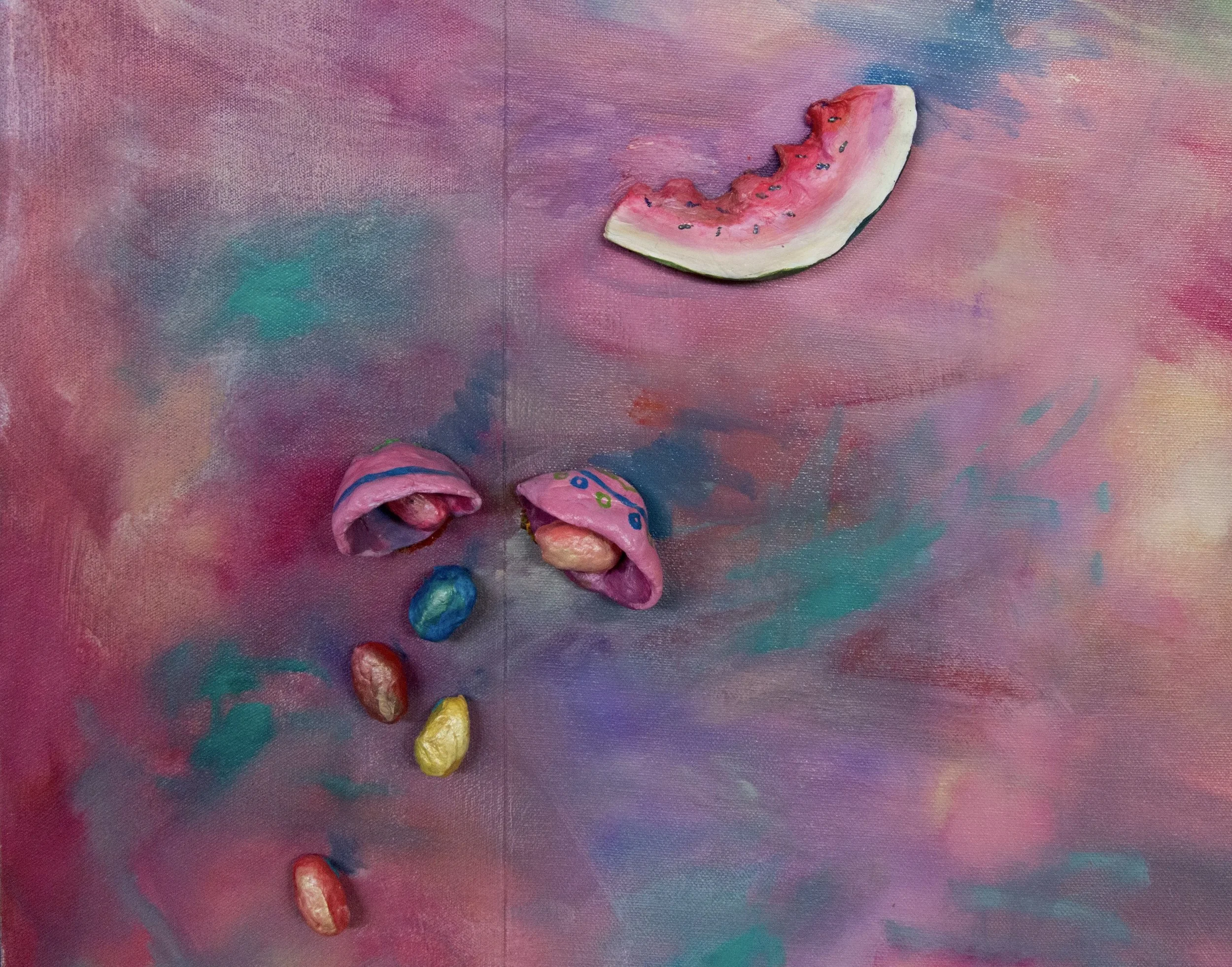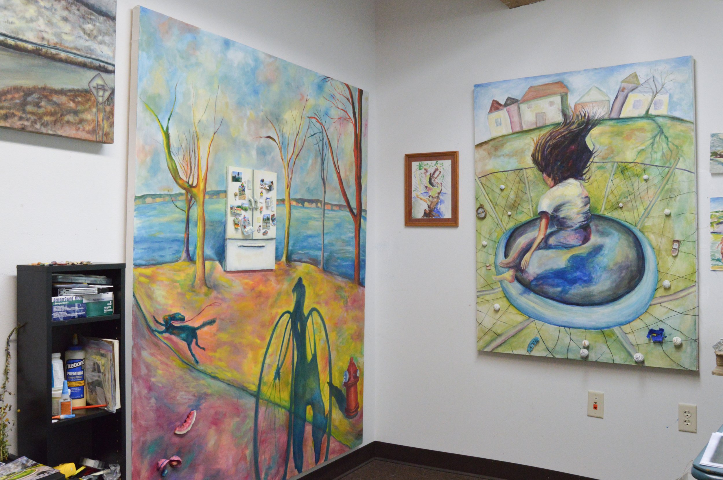 “Homecoming”, 72" x 60" x 2", Oil, wood, acrylic, sculpey polymer clay, modelling clay, paper, cardboard, magnets, pencil, and pen ink on canvas